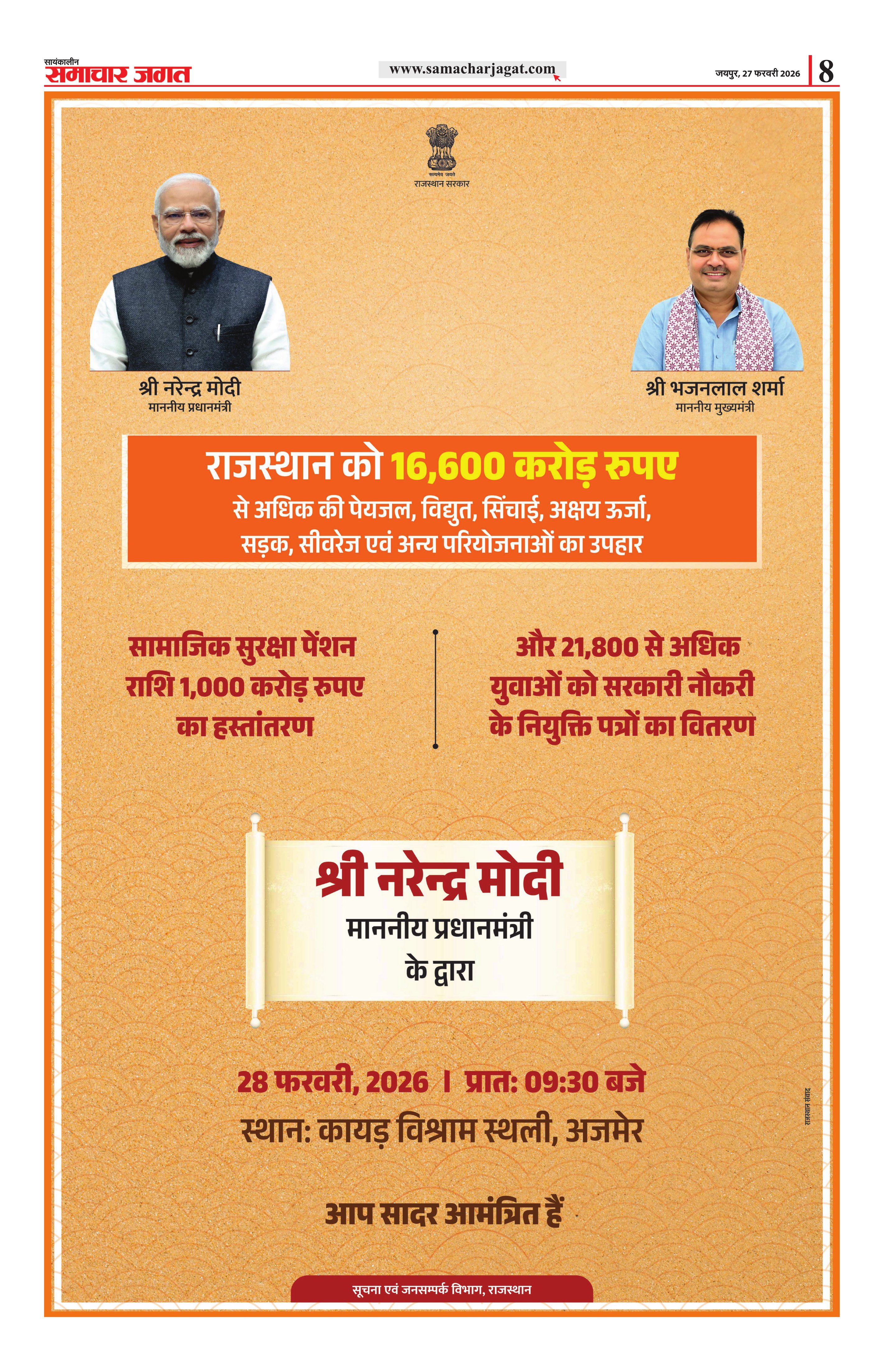 Copyright @ 2026 Samachar Jagat, Jaipur. All Right Reserved.