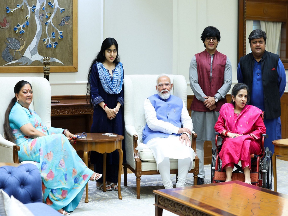 सोमवार को पूर्व सीएम वसुंधरा राजे अपने बेटे दुष्यंत सिंह, बहू निहारिका सिंह और अपने पोते-पोती के साथ पीएम मोदी से मिलने पहुंचीं। उनके फोटो सोशल मीडिया पर तेजी से वायरल हो रहे हैं। इस मुलाकात में सबसे ज्यादा चर्चा वसुंधरा राजे के पोते विनायक प्रताप सिंह की हो रही है। खबरों के अनुसार, पीएम मोदी से मुलाकात के दौरान विनायक प्रताप सिंह से उनकी खास बातचीत भी हुई है। इसी कारण अब कयास लग रहे हैं कि विनायक प्रताप सिंह जल्द ही राजनीति में एंट्री कर सकते हैं। वह दादी वसुंधरा राजे की राजनीतिक विरासत को आगे बढ़ा सकते हैं।